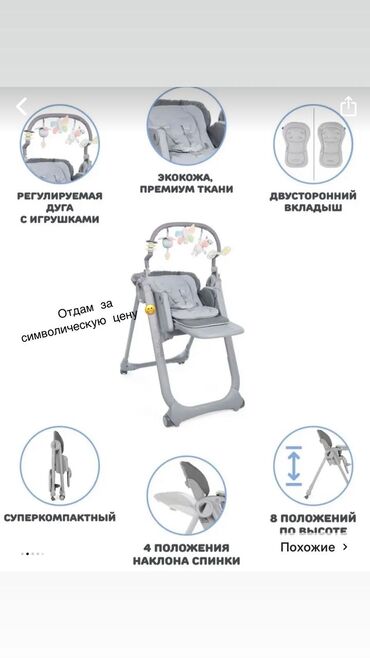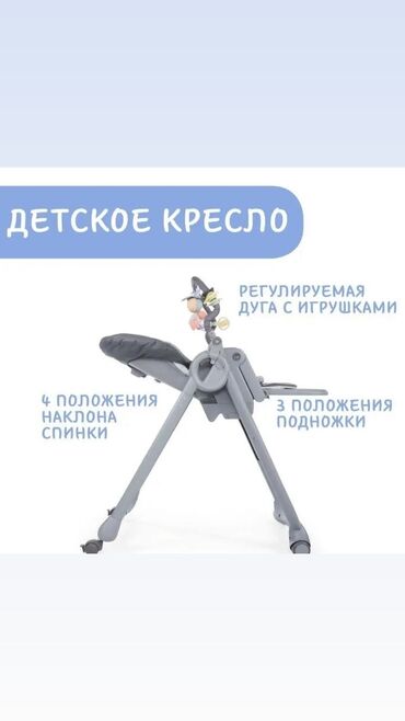 Детский стульчик для кормления - Комфортное сиденье с мягкой вставкой и ярким принтом, высокая спинка. Откидывается в лежачее положение - Съемный большой столик - Прочная металлическая рама на ус...