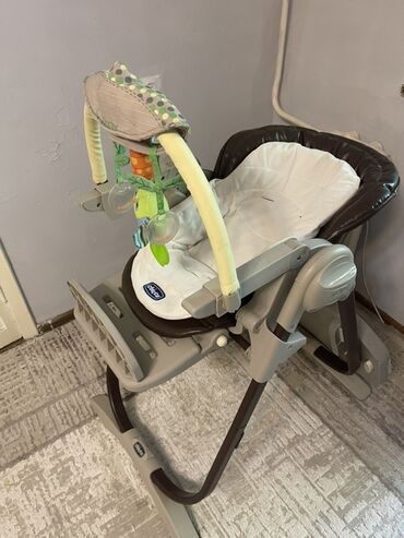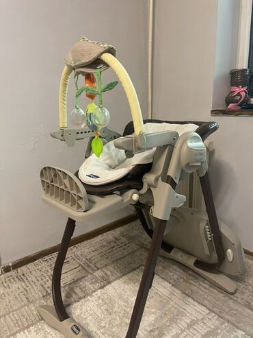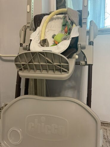 В комплекте: база-рама, сиденье с ремнями, мягкий вкладыш, игровая дуга с игрушками, двойной столик (верхняя панель и основной поднос), нижняя полка-подставка. Цвет: бежево-коричневый. Бренд: Chicco.