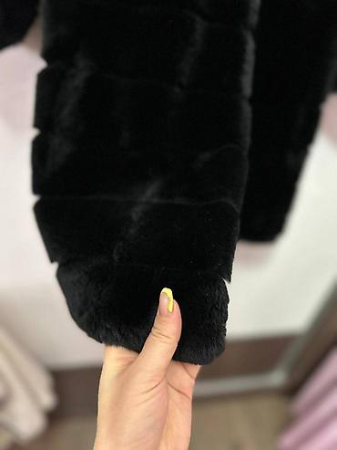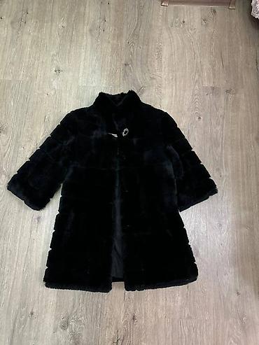 Шуба из натурального меха, классический прямой крой. Цвет: насыщенный тёмно‑коричневый/чёрный с благородным блеском. Длина до середины бедра, длинные рукава. Тёплый воротник‑стойка/полустойка, заст...