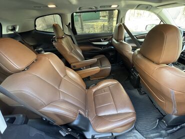 - Салон: 7‑местная конфигурация с раздельными креслами второго ряда (капитанские сиденья) и третьим рядом; обивка коричневой кожей, подлокотники, множество подстаканников и ниш.