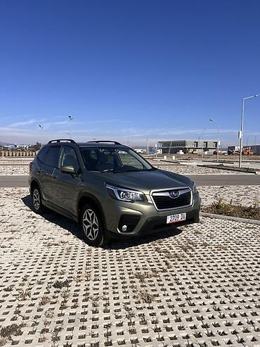 Subaru Forester, кроссовер в оливково‑зеленом цвете.