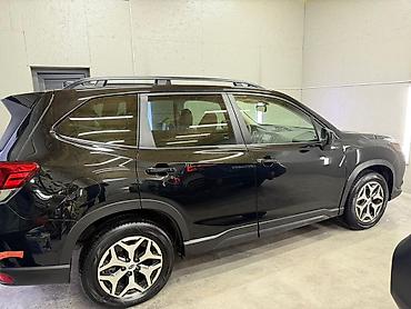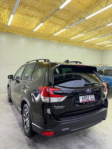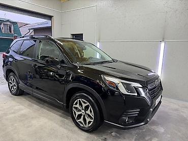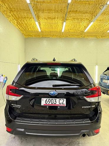 Subaru Forester 2023, черный кроссовер с фирменным полным приводом Symmetrical AWD.