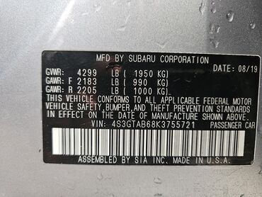 Субару Аскент , премиум + 2019 год. 2.4 см бензин 8-ми местный салон. в отличном состоянии без вложений из США. свежая . VIN:4s4wmacd3k3449771 без повреждений!!!
