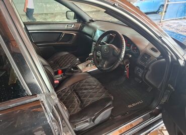 - Кузов: 4‑дверный седан, чёрный металлик, тонировка, фирменная решётка Subaru, спойлер на крышке багажника, декоративные накладки порогов.