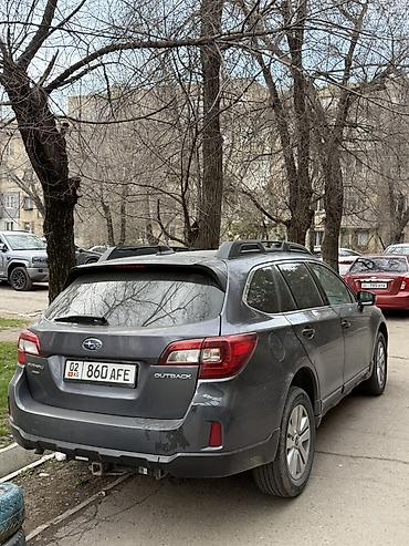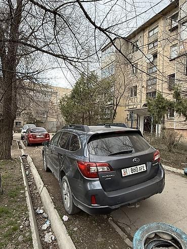 Практичный универсал для города и загородных поездок: комфортная подвеска, полный привод для уверенности на плохой дороге и в непогоду, удобные рейлинги для перевозки багажа. Номер модели и эмблемы на кузове: Subaru Outback. Номер региона на госзнаках: KG.