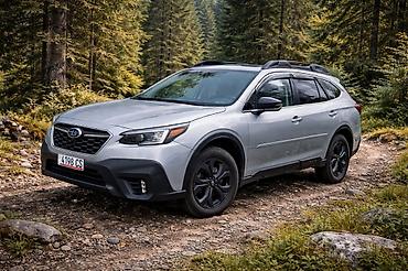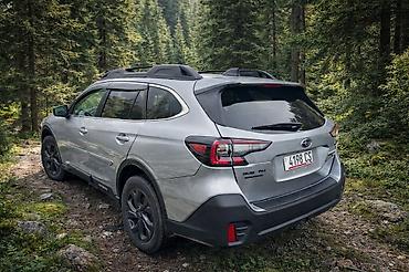 Subaru Outback (актуальное поколение), серебристый кросс-универсал с фирменным полным приводом Symmetrical AWD и увеличенным дорожным просветом — готов к горным тропам и городским маршрутам.