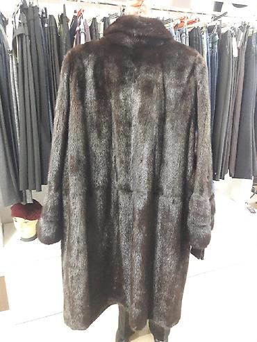 Шуба из цельной норки, темно-шоколадный цвет. Особенности: - Натуральный мех с глубоким блеском и равномерным ворсом - Свободный прямой крой, длина — ниже колена/приблизительно миди - Объемный кап...
