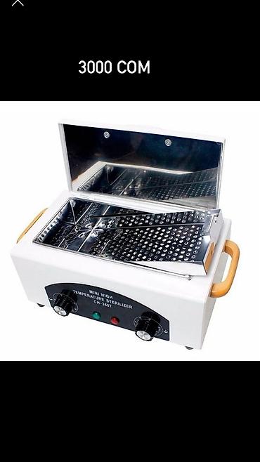 - Сухожаровый стерилизатор Mini High Temperature Sterilizer CH-360T, металлическая камера с перфорированным лотком, механический регулятор температуры, индикаторы работы, деревянные ручки. Цена на изображении: 3000 сом.