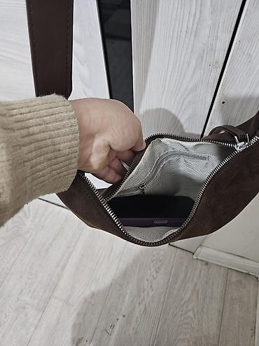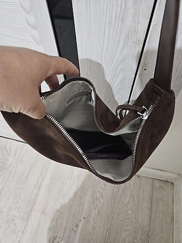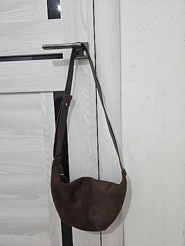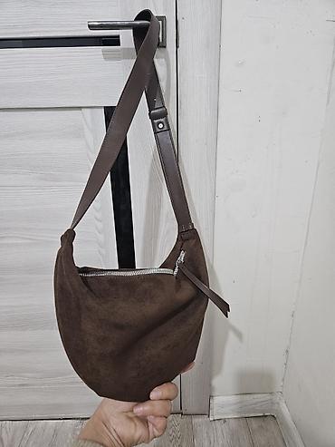Трендовая сумка круассан из коричневой замши