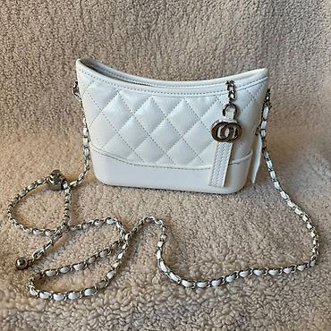 Сумка через плечо, белая, с простёжкой «квинт» и цепочкой-ремнём. -