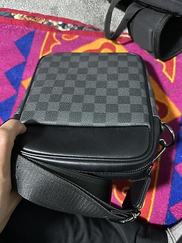 - Материал: сочетание гладкой эко‑кожи и фактурного материала с шахматным серо‑черным принтом