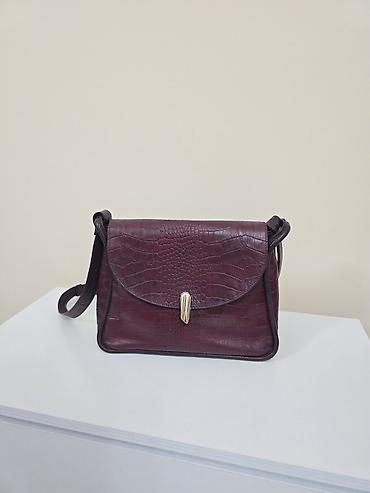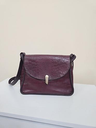 Сумка через плечо из бордовой кожи с тиснением под крокодила. Изначальная цена стоило: 8000 сомов