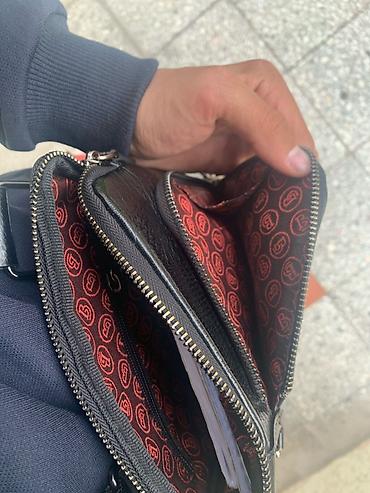- Внутри – контрастная подкладка бордового цвета с логотипами, внутренний карман на молнии и открытые секции для телефона/документов.