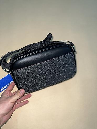 Мужская компактная сумка через плечо - Брендовые модели: COACH (черный монограмный принт Signature) и LACOSTE (черный с геометрическим узором и логотипом). - Формат: кросс-боди/«камера-бэг». - Мат...