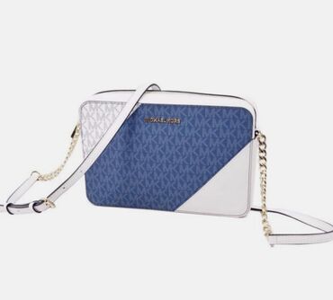 - Цвета: белый/молочный, синий с монограммой, светло‑серый; логотип Michael Kors спереди золотистыми буквами.