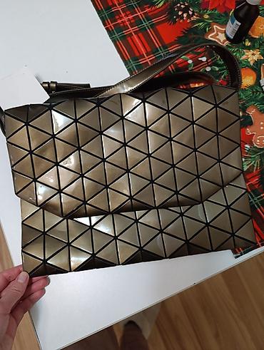 - Цвет: металлический бронзовый с черной геометрической раскладкой (треугольные сегменты).