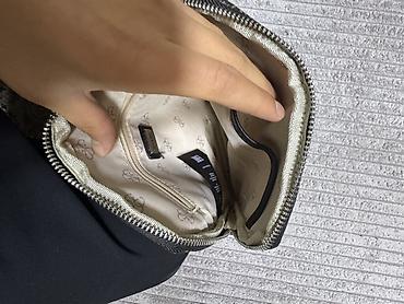 - Ремень: широкий регулируемый текстильный, с рельефным логотипом GUESS; крепления на металлических карабинах.