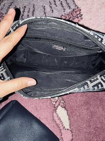- Материал: плотная ткань с контрастным логотипным рисунком, отделка под кожу по углам и на ремне.