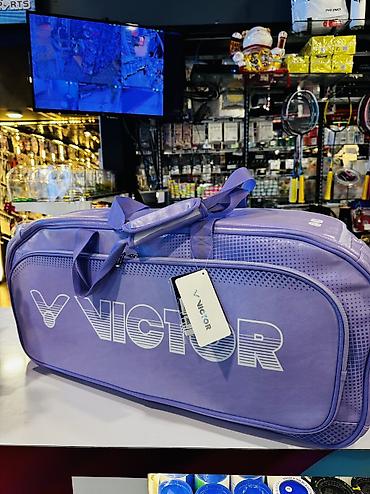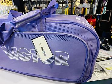 - Дизайн: фиолетовый цвет, крупный логотип VICTOR, точечный орнамент по краям