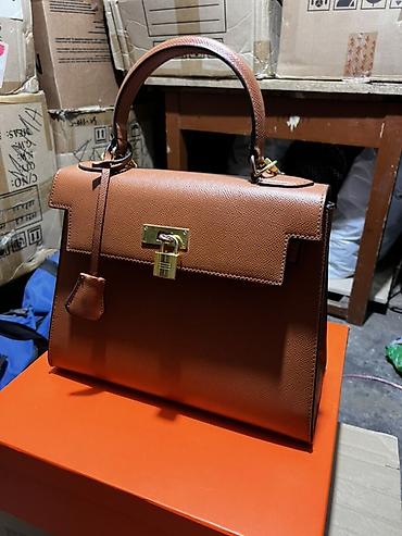 Сумка-HERMES в классическом стиле с замком и ключиком - Материал