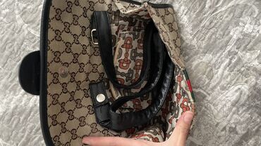 - Материалы: плотная канва с монограммой GG; отделка и элементы из черной кожи.