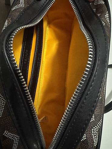 - Внутри: подкладка ярко-жёлтого цвета, плоский карман/секции-органайзеры