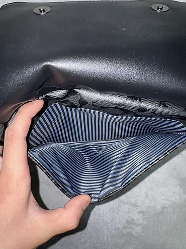 - Подкладка: плотная ткань в серо‑синюю полоску.
