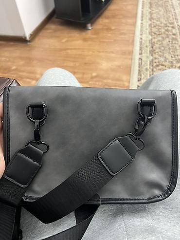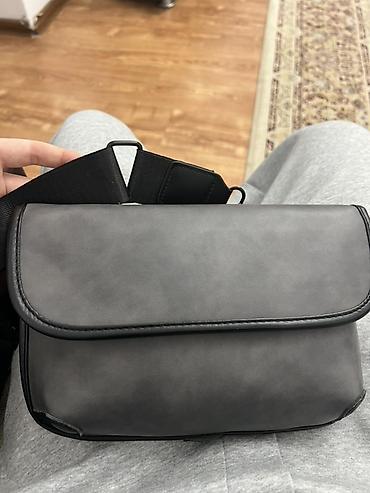 Сумка через плечо графитово‑серая. - Материал: гладкая эко‑кожа с