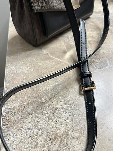 - Материал: фирменный coated canvas с монограммой MK + гладкая черная кожа на клапане/передней панели