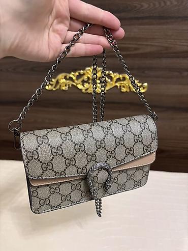 - Фурнитура: фигурная пряжка-клапан в виде подковы/голов драконов, цепочка через плечо с крупным звеном.