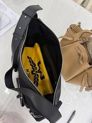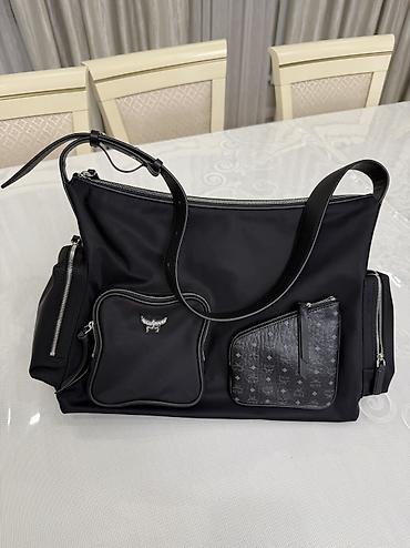 Сумка MCM (черная, текстиль/кожа) - Просторная основная секция на