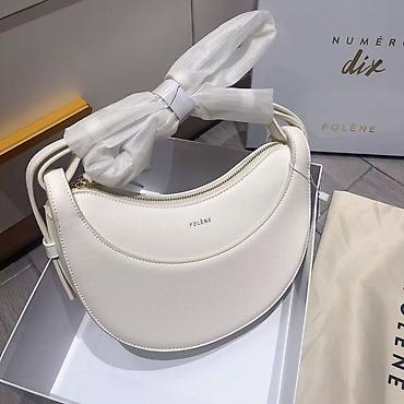 - Форма: полукруг (saddle/baguette), плавные линии, минималистичный дизайн с тиснёным логотипом POLÈNE.
