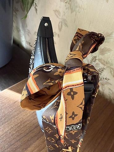 - В комплекте шёлковый твилли в коричнево-карамельной гамме с монограммой (можно носить на ручке или отдельно).