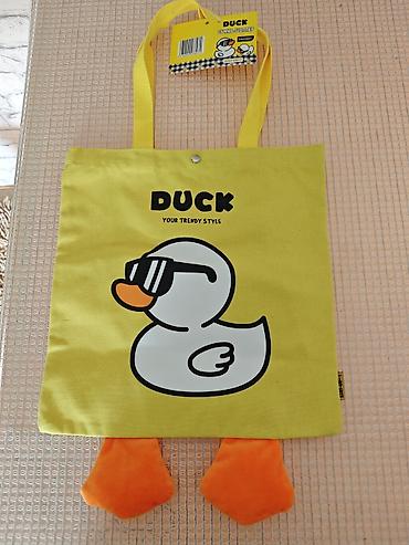 Сумка-шоппер DUCK (модель DK23827) Совершенно новая, стильная! Бренд DUCK! - Яркая желтая эко-сумка с принтом утенка в солнечных очках и мягкими объемными «лапками» внизу. - Материал: плотная ткан...