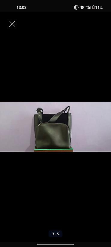 - Материал: гладкая экокожа оливково‑зеленого оттенка в сочетании с бархатистой вставкой (под замшу) спереди.