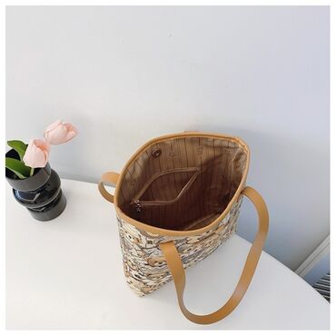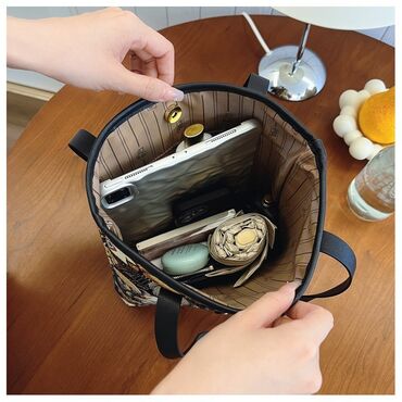 Вместительная женская сумка-шоппер с интересным принтом. Внутри - одно основное отделение с подкладкой и небольшим карманом на молнии для мелочей.