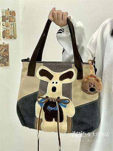 Сумка-тоут с мультяшным аппликационным псом - Материал: плотный