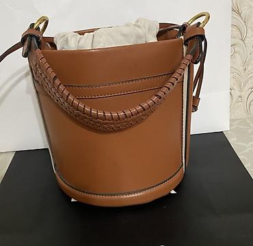 Сумка-ведро из гладкой коричневой кожи с переплетённой ручкой.