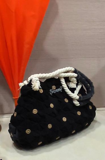 1) Объёмная черная текстильная сумка с канатными ручками