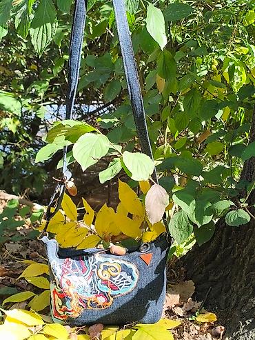 2) Джинсовая кросс‑боди с яркой аппликацией