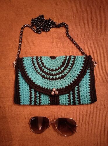 Вязаная модельЗастежка на магнитеЗастежка на молнииСъёмный ременьСумочка через плечо вязаная. Ручная работа, сделано качественно. Новая, не пользовались. Очки не продаются, на фото для понимания размера.