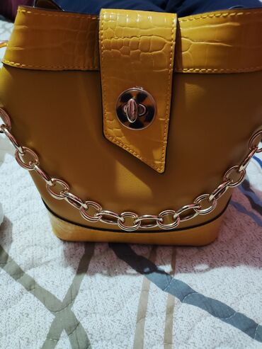 СамовывозСумочка молодежная очень крутая,ручка из крупных цепей,горчичного цвета
