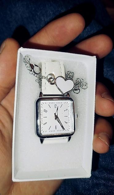 - В комплекте декоративный браслет-цепочка с подвеской в форме сердца в тон часам.