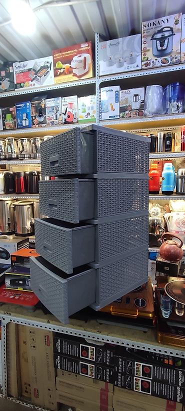 Комод 4-х секционный компактен, его можно расположить в любом удобном месте. Комод пластиковый, высокой прочности, с выдвижными крепкими ящиками.