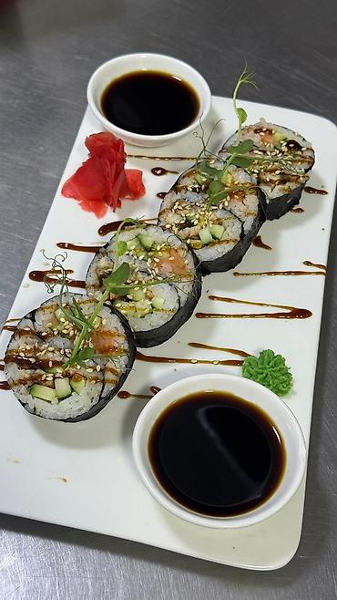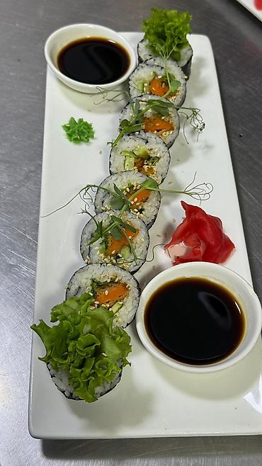 - Классические маки/роллы в нори с рисом, огурцом, зеленью; варианты с рыбой и овощами.