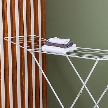Складная многоуровневая сушилка для белья на колесах - 3 яруса с широкими решетками: одновременно помещаются полотенца, рубашки, брюки, детские вещи. - Боковые крылья с выемками для плечиков и кре...