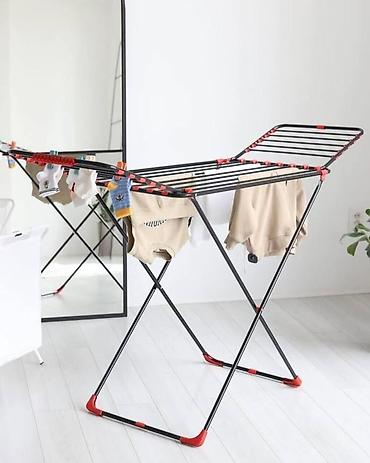 Сушилка для белья напольная, складная. Описание: - Тип: раскладная сушилка-«крылья». - Материал: металлическая труба и прут с полимерным покрытием. - Конструкция: центральная секция с решёткой + д...