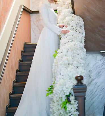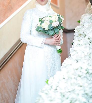Свадебное платье новое размер ХS S M - Цвет: белый. - Силуэт: прямой/умеренно приталенный. - Длина: в пол, со шлейфом. - Ткань: кружево и сетка с рассеянным бисерным/жемчужным декором по всему по...