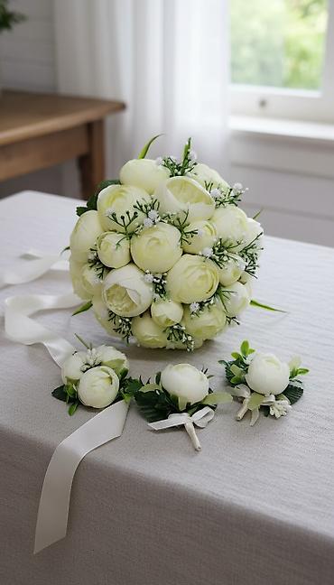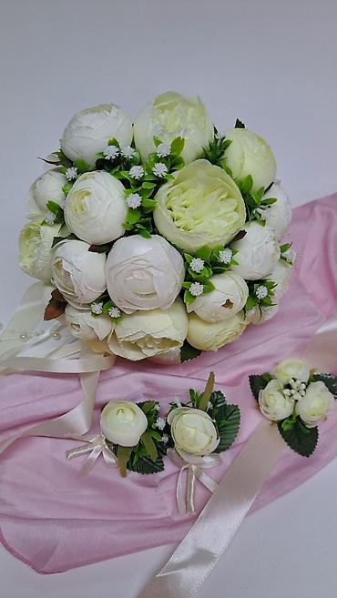 Свадебные букеты,ручная работа, каждый лепесток сделан в ручную. Букеты очень нежные, лёгкие, не завянут и не испортятся даже через несколько лет. Цена букета 1200с Цена за комплект 1500с (в комп...