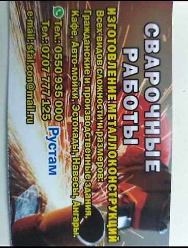 Сварачные работы всех видов и сложнастей ангары навесы бытовые и произвотственые помишения. Фермы, Колоны, Балки, и многое другое. Профисеональная команда к вашим услугам. Мы рады вам помочь.